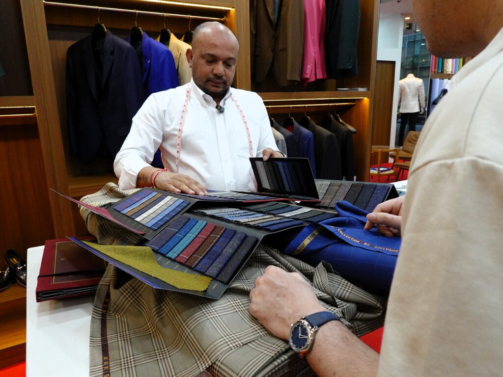 Anthony first laid out a wide selection of fabric books for me to browse, ranging from pure wool to more affordable wool blends, as well as tweeds and linens. The breadth of choice was genuinely impressive—there is, quite clearly, something to suit every preference and budget.
