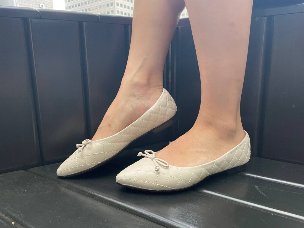 For my friend, I got her the Adriana Bow Pointed Toe Flats. As opposed to the Julie Crystal Ballet Flats, the Adriana Bow Flats feature a pointed toebox, an unembellished bow, and a quilted design. It’s a younger design, one that I felt was more appropriate for my friend (who’s in her mid-twenties).
