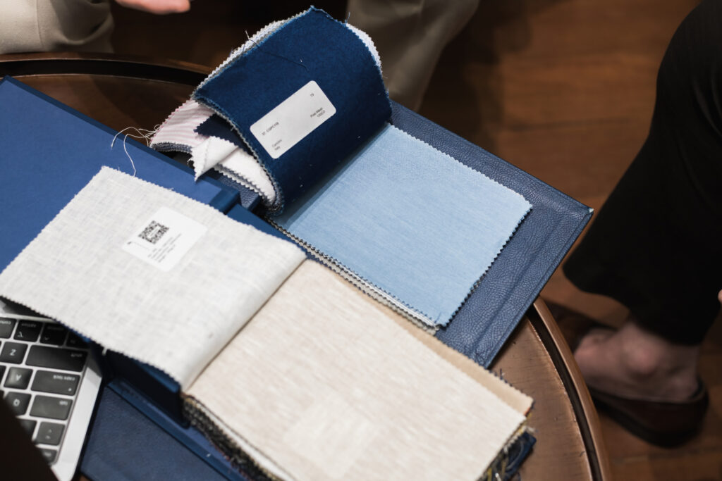 To complete the look, Glenn suggested grey wool trousers, which would still be appropriate for more formal settings. In line with the linen and denim selections, he recommended a wool with a more pronounced texture. From this approach, it became clear that Glenn is not afraid to push his clients stylistically — many tailors might simply suggest a navy suit and white shirt and leave it at that, but Glenn at Edit Suits goes further.