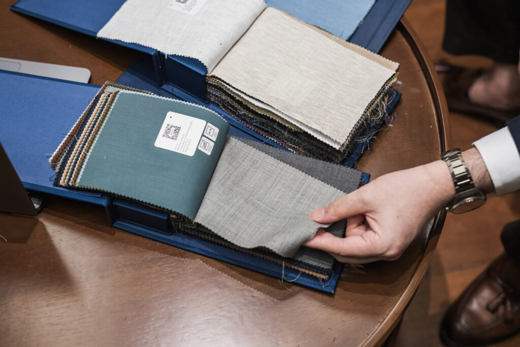 With the fabrics finalised, Glenn proceeded to walk me through the extensive customisation options available at Edit Suits. These can also be viewed online for those who wish to explore them in advance. For my commission, we kept things fairly restrained — opting for a quarter-lined, single-breasted linen jacket with patch pockets, and grey wool trousers with pleats and cuffs.