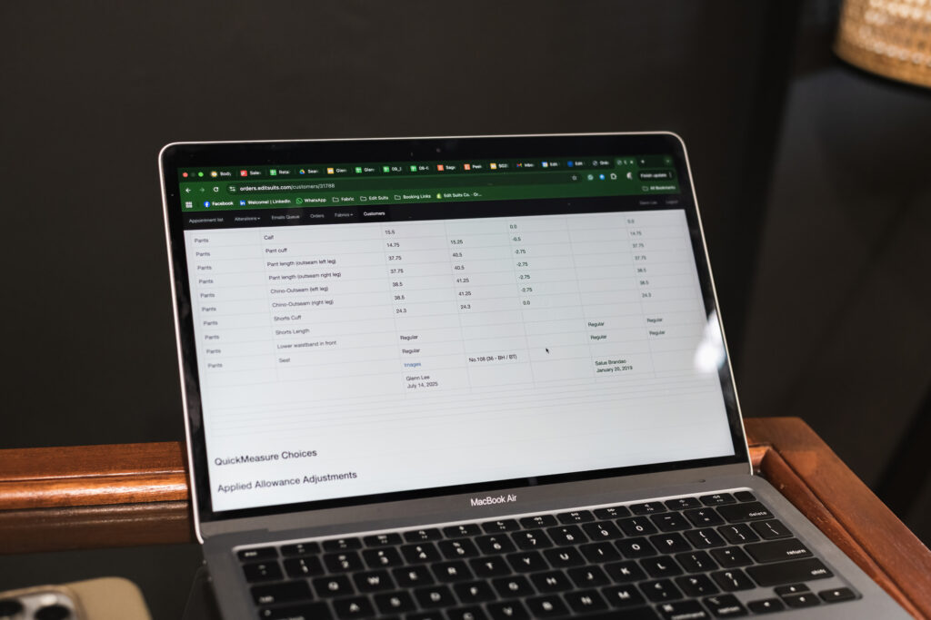 Next, Glenn took my measurements. As I have previously documented that experience in detail, I will not reiterate it here. Instead, I will focus on Edit Suits’ unique fitting jacket system.