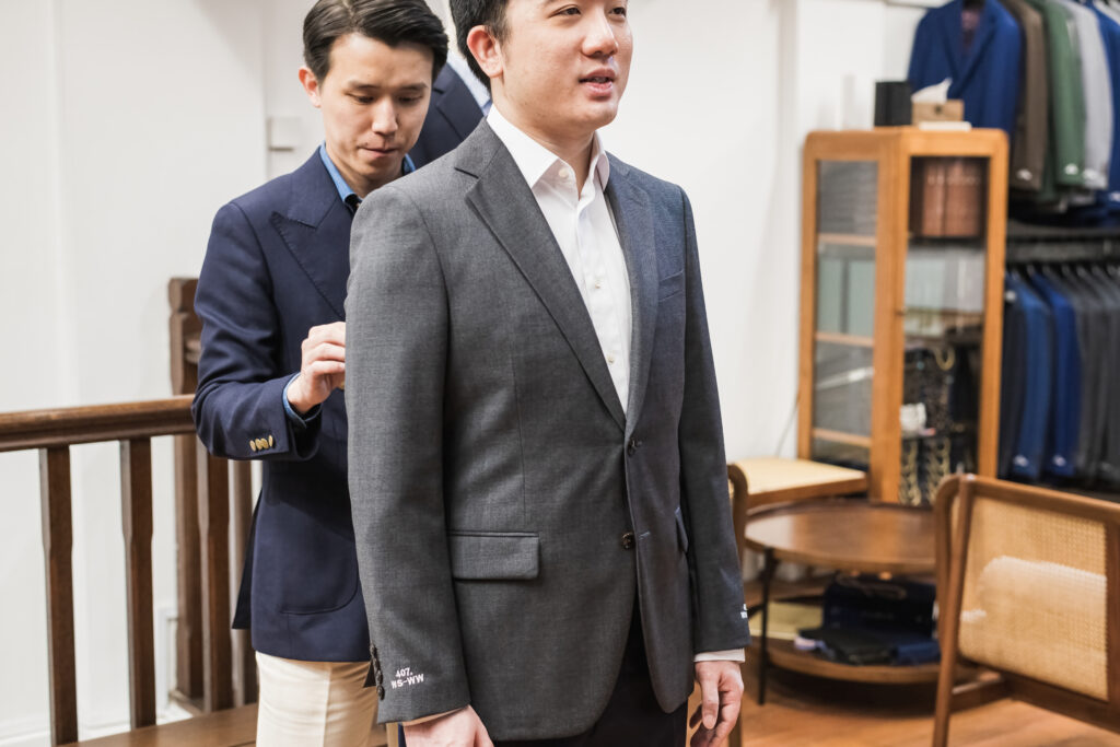 Furthermore, the back—often a challenging area—drapes beautifully with minimal wrinkling. Glenn had paid particular attention to this section during the fitting, and the result is a remarkably clean silhouette. Compared to some of the more affordable tailors I’ve visited, the fit here with Edit Suits is clearly a cut above.