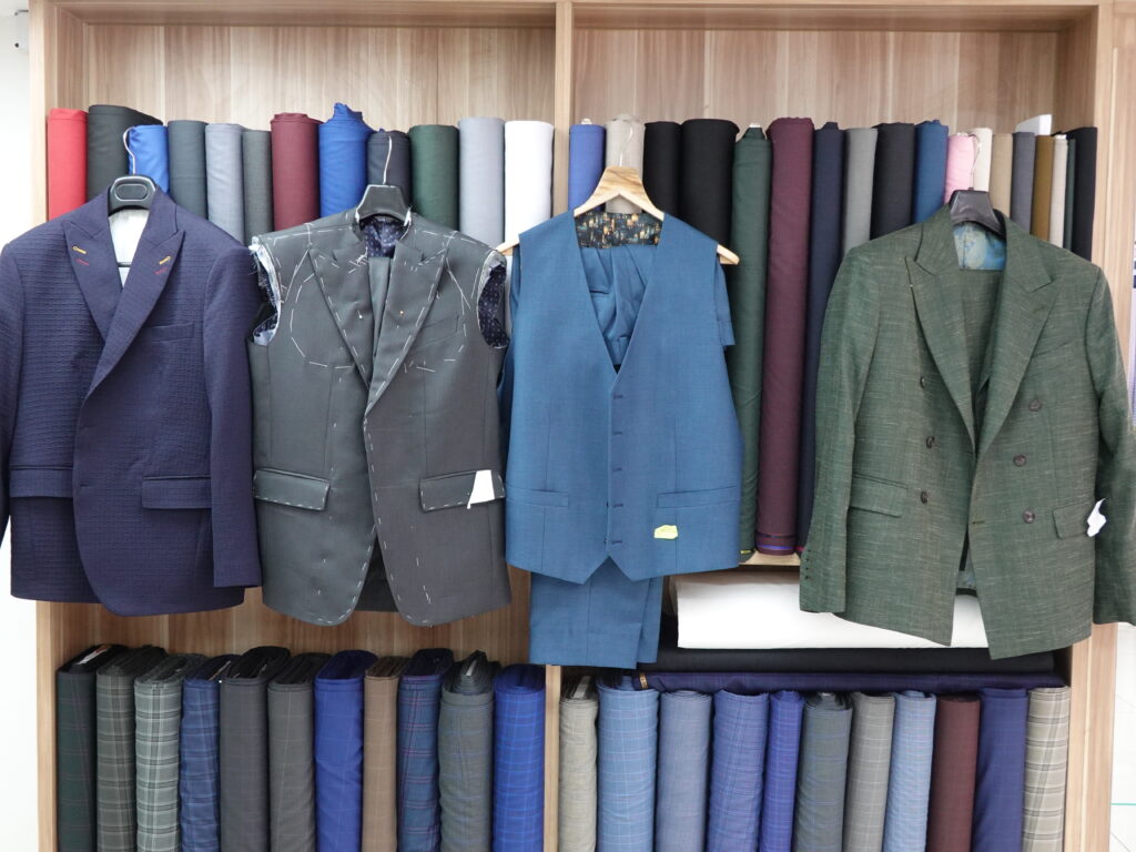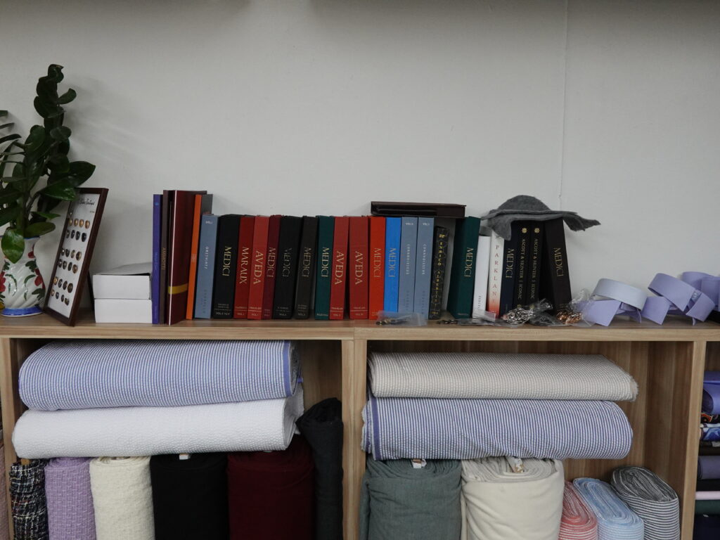 Beyond the fabric rolls lining the walls, I also noticed a substantial selection of fabric books—another reassuring indication of the breadth of fabrics available at Jacob Bespoke Tailor.