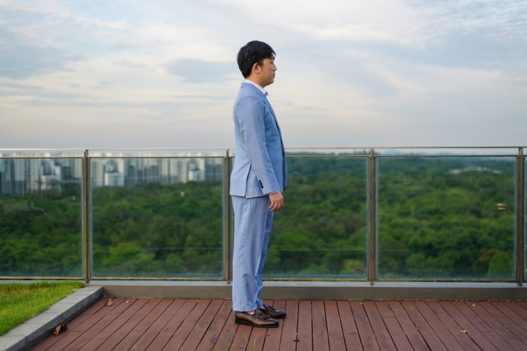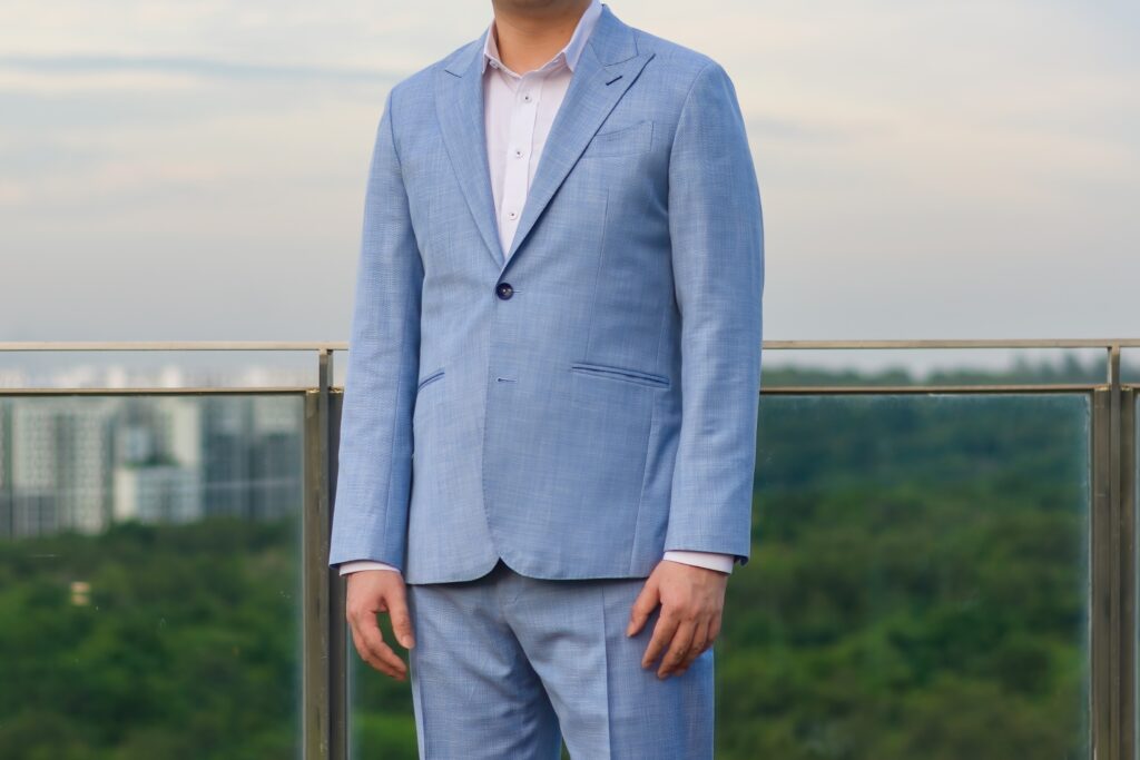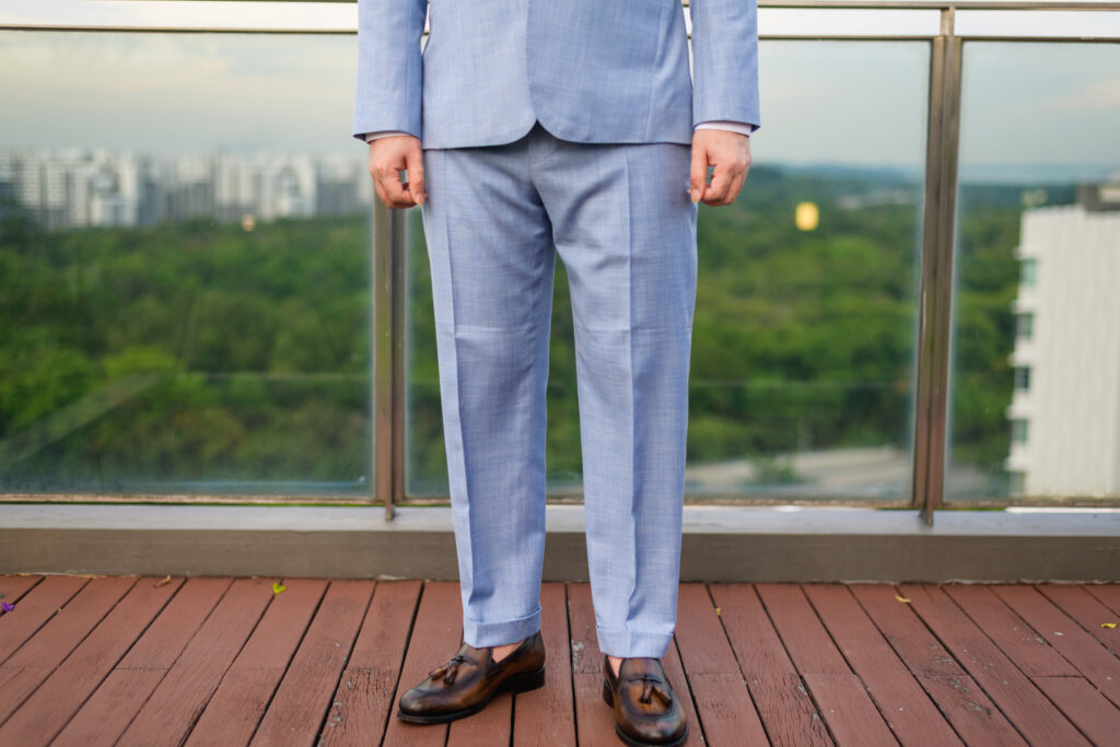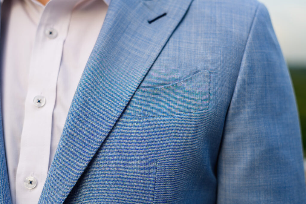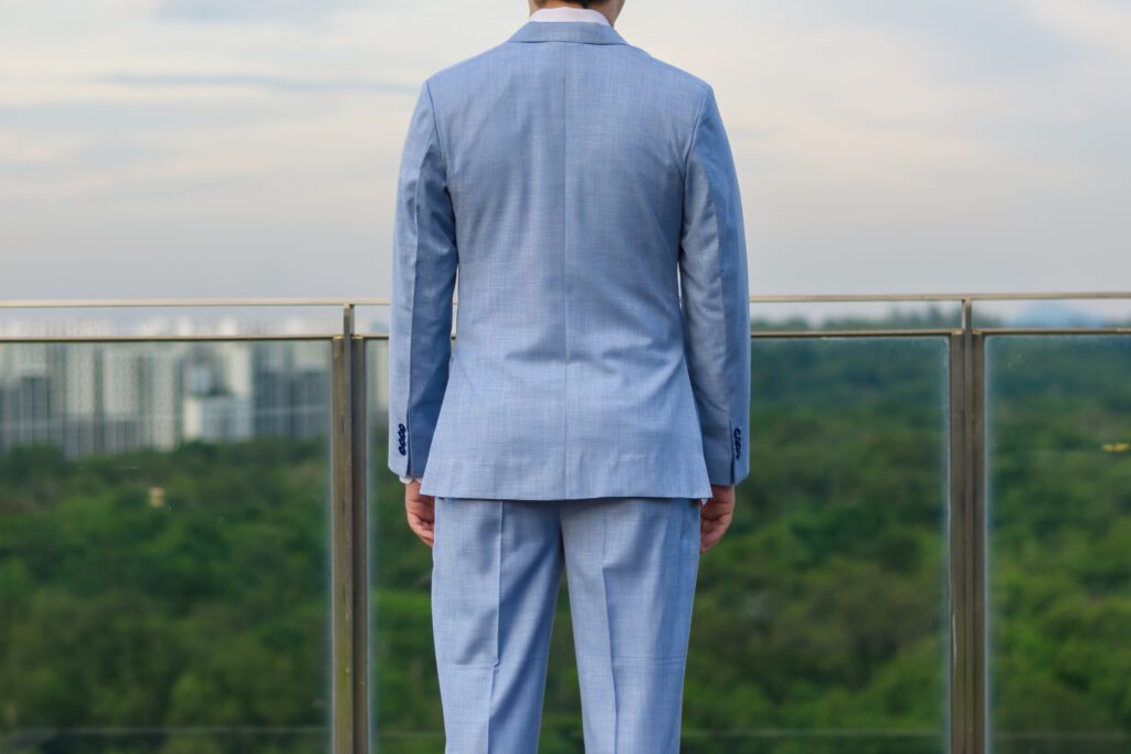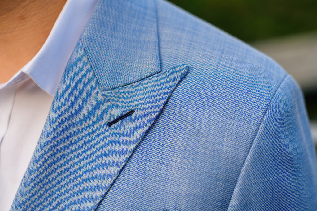 However, it was a sky-blue wool–silk–linen blend that immediately caught my attention. I’ve always had a soft spot for blue suits in all their varied shades, and this material offered the ideal balance of style and comfort—versatile enough to dress up or down, yet light enough for Singapore’s humidity. This particular fabric also featured a distinct, eye-catching texture that set it apart.