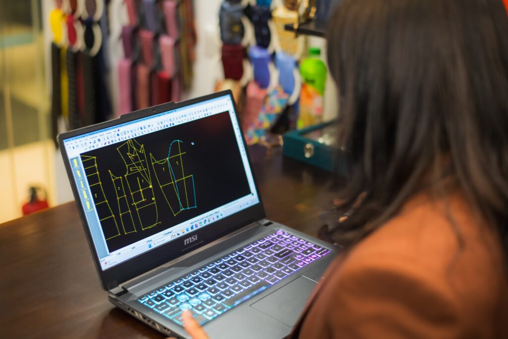 In line with Perfect Attire’s thoughtful use of technology, Tulsi begins by drafting digitally on her laptop before sending the pattern to her workshop for cutting and assembly. It’s a modern interpretation of the traditional paper-drafting process, and notably, she handles the drafting herself—a contrast to many tailors at a similar price point, who simply relay measurements to their workshops. When I mentioned this to her, she responded as though it were self-evident, remarking, ‘I’m the one who takes the measurements and fits the clients, so it’s only natural that I’m the one doing the drafting!’