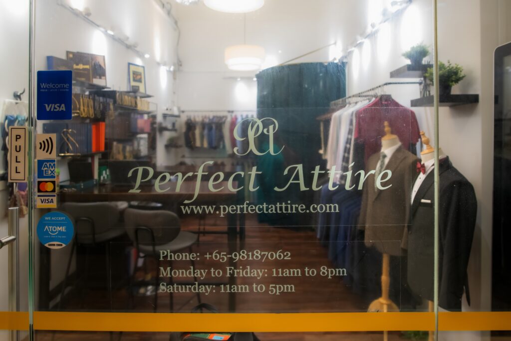 Head up to the third floor and look for the Perfect Attire logo on the door. Please note that the shop is closed on Sundays and operates on shorter hours on Saturdays. As many of their clients are working professionals, weekday evenings tend to be their busiest period, so appointments are generally recommended during those times.