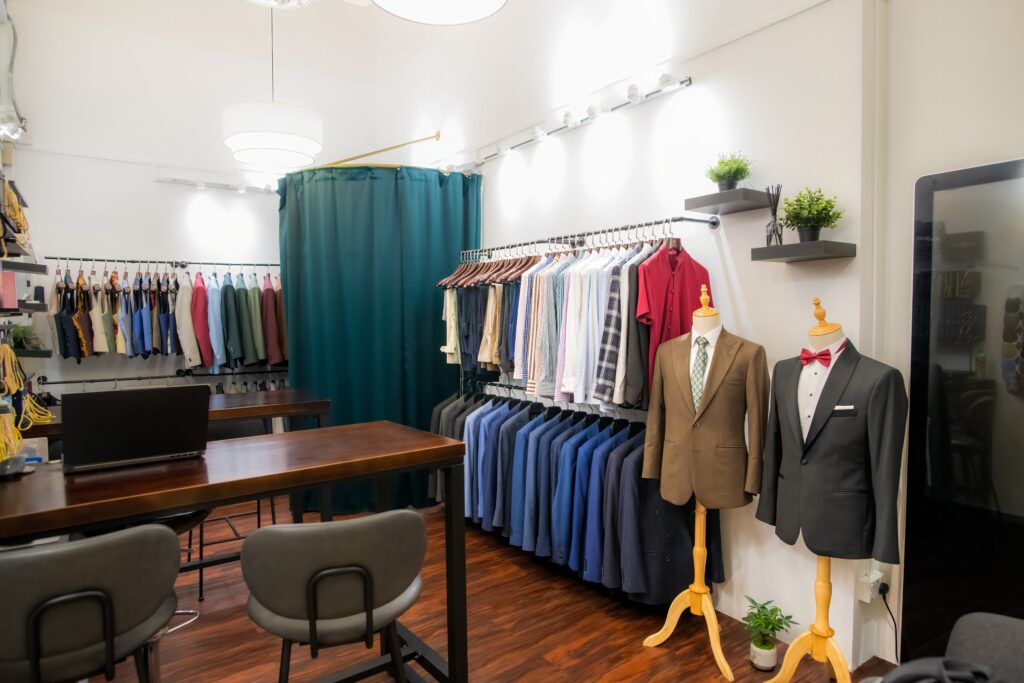 While the showroom isn’t the largest, it’s tidy and inviting, with rows of garments neatly lining the walls. And given that Perfect Attire’s clientele consists largely of working professionals, it’s no surprise to see a generous selection of navy suits on display.