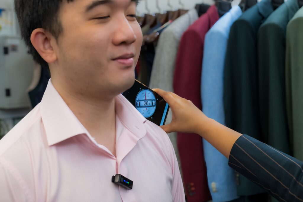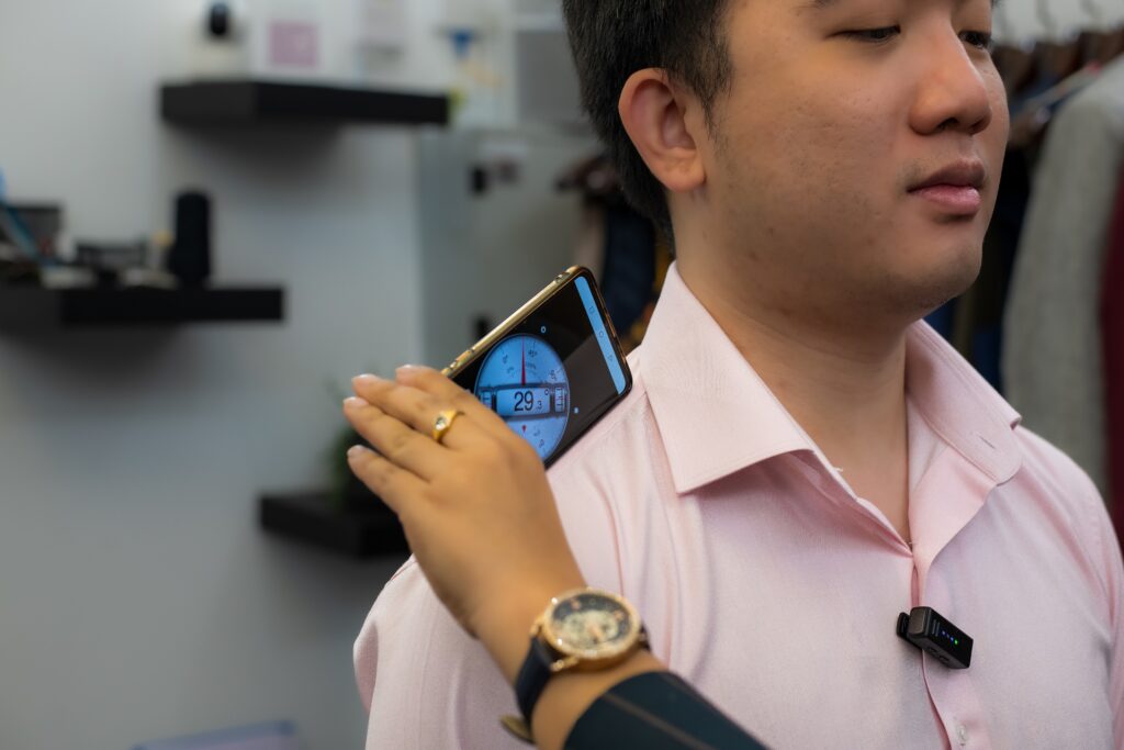 I would, however, like to highlight Tulsi’s thoughtful use of technology in her process. Perfect Attire forgoes flashy, gimmicky tools—such as the 3D body scanners some tailors employ—and instead adopts simple, purposeful technology that sets them apart from traditional ateliers. In this case, Tulsi used an app on her phone to measure the slope of my shoulders.