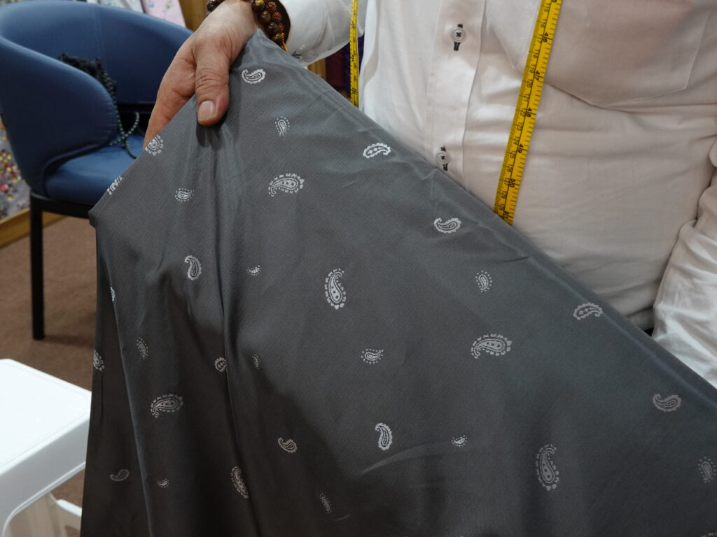 As for the lining, we went for a tone-on-tone grey lining fabric with a paisley print.
