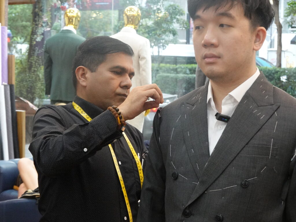 He wasn’t alone, however. During my fitting, he was joined by Ram, whom longtime readers might recall from my first visit to Narry Bespoke Tailors. Ram had recently left to join Louis at Perfect Tailor BKK’s new showroom. With over two decades of tailoring experience—including overseeing countless basted fittings—he was able to support Louis by swiftly identifying the areas that required adjustment.