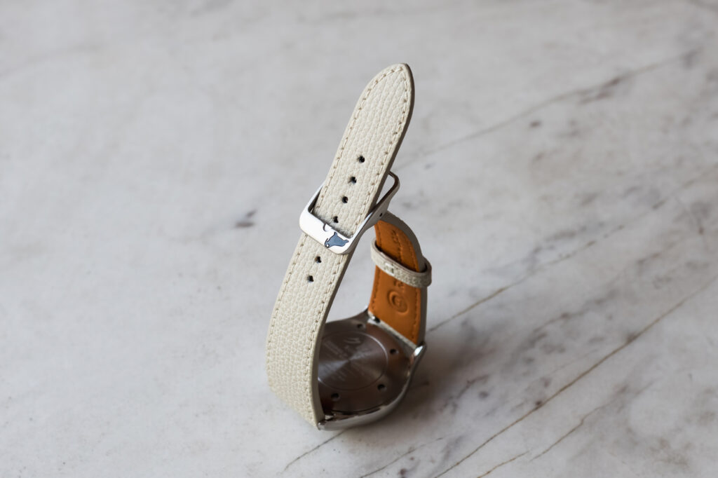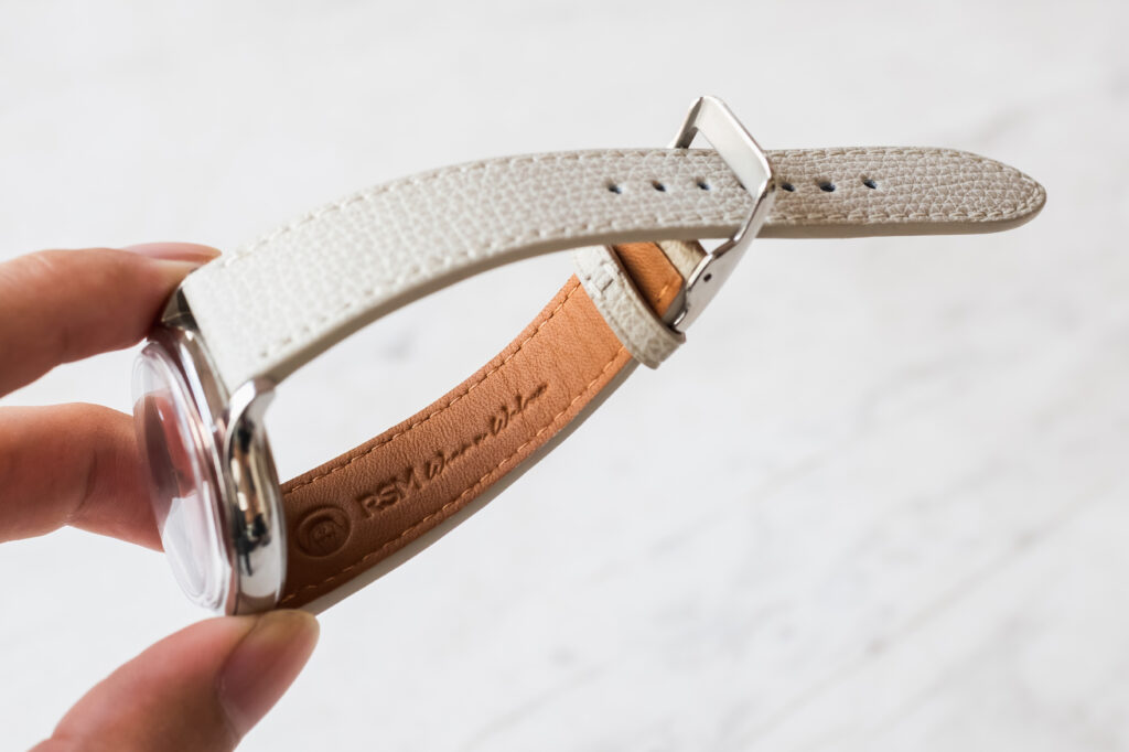 Although Epsom leather straps are common, white Epsom variants are surprisingly rare. I paired RSM’s white Epsom strap with my Kurono Toki and found its crisp, elegant tone to enhance the watch’s inherent Japanese refinement beautifully.