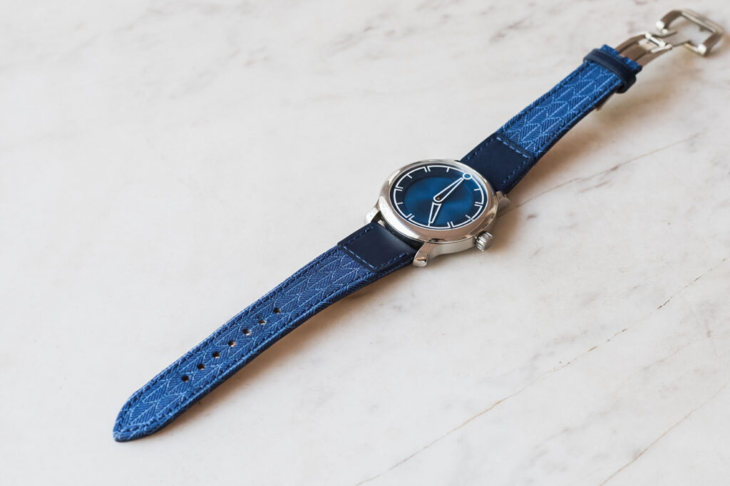 I chose to pair the silk strap with my Ming 17.09, a watch that itself carries a subtly Art Deco-inspired aesthetic. The strap’s blue hue echoes the dial’s tones beautifully, while its understated leaf motif complements the watch’s refined guilloché texture. The result is a distinctive yet elegantly restrained combination.