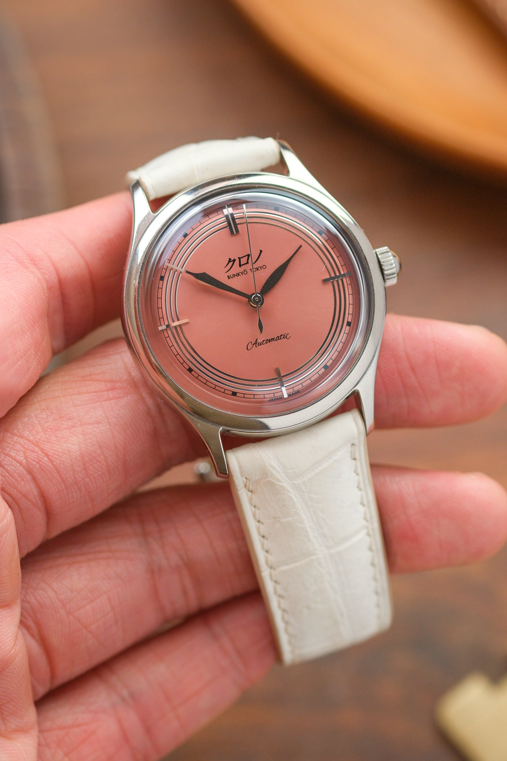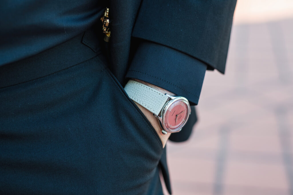 The pronounced Epsom texture and clean white hue evoke the look of far pricier Himalayan crocodile straps, creating a striking contrast against the Kurono Toki’s pink dial. I’ll admit my inspiration came from an Instagram post featuring the Toki on a Himalayan croc strap; I suspected RSM’s white Epsom would achieve a similar effect—and I’m pleased to say it does.