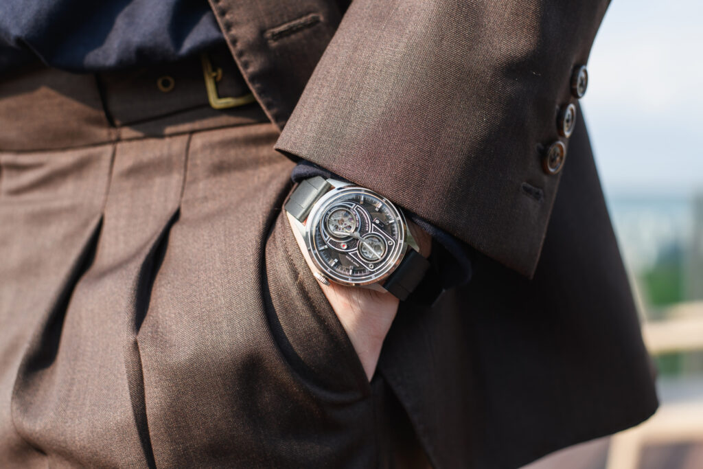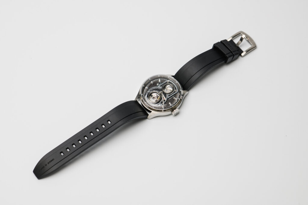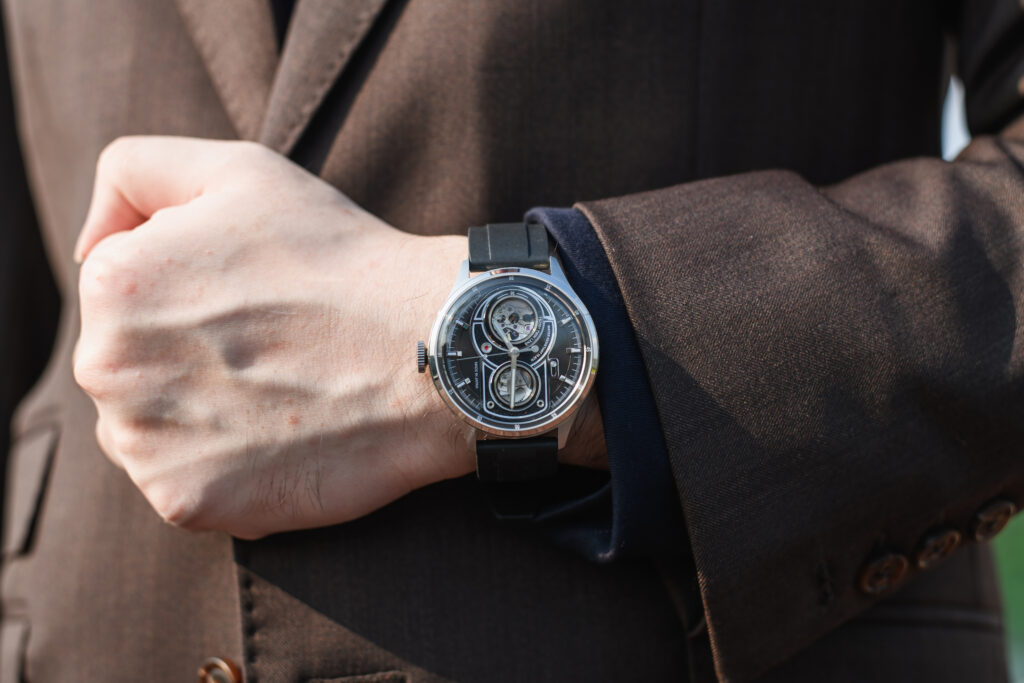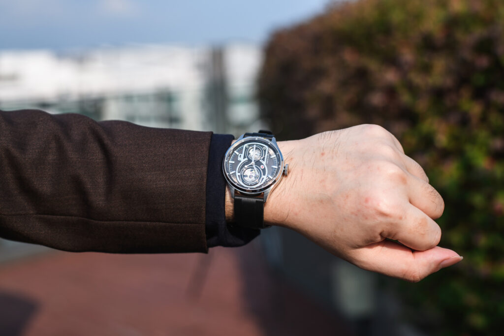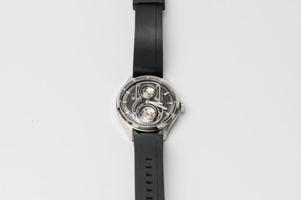 Like the original ATL, the ATL Lite draws inspiration from the twin-lens reflex camera, which rose to prominence during World War II. The layered dial—said by the brand to be hand-assembled in Japan and composed of 11 components—offers impressive depth, enhanced by its varied textures. Yet the dial’s most striking feature is undoubtedly the dual open-heart design, a clear nod to the twin lenses found in vintage viewfinders. In fact, the photography theme is so pronounced that several watch enthusiasts have asked whether the ATL Lite is a Leica collaboration.