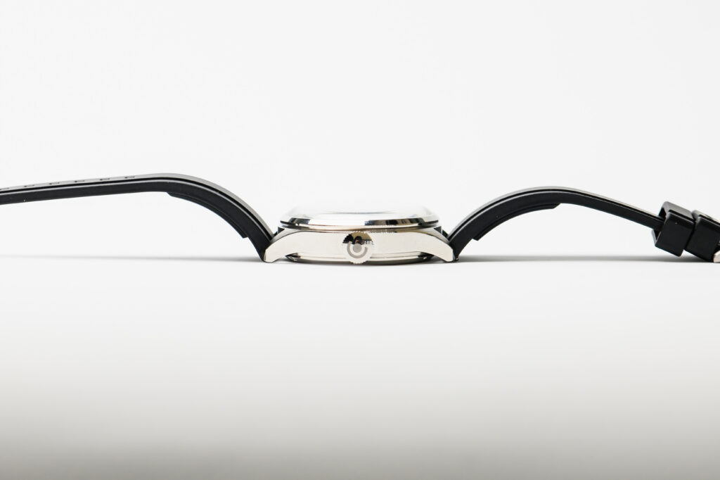 The rest of the watch is predominantly finished in polished surfaces, though the front of the lugs features brushing for a touch of contrast. There’s also a signed crown, a thoughtful detail that is not always guaranteed at this price point. It is adequately sized as well, making hand-winding easy for those who prefer to do so.